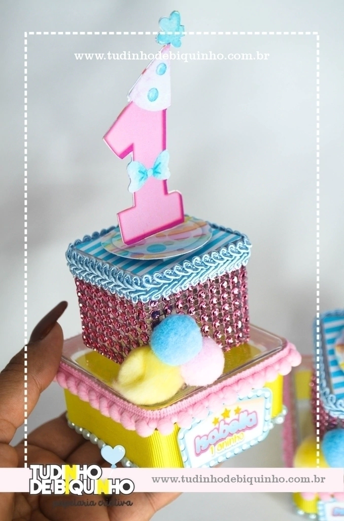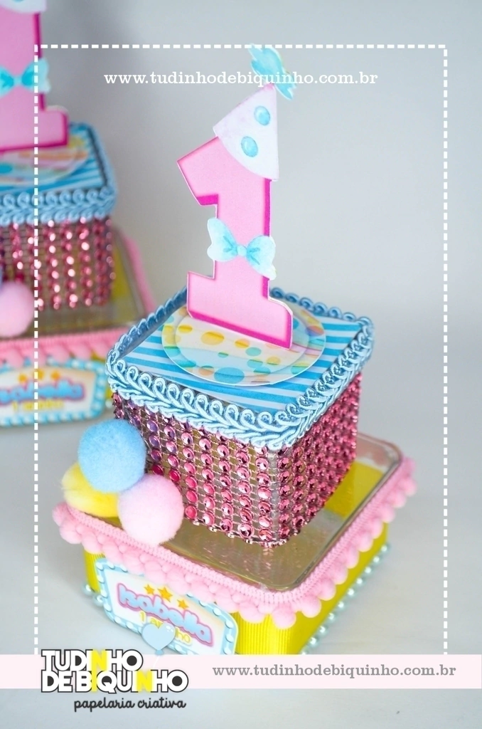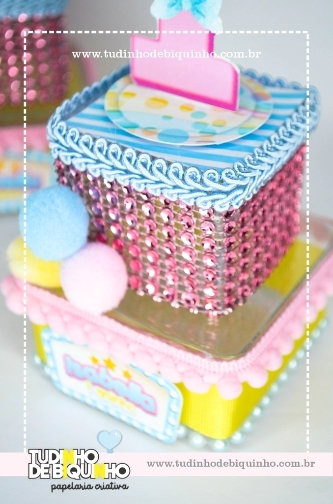 Caixinhas de acrílico com aplique 3D e aviamentos
