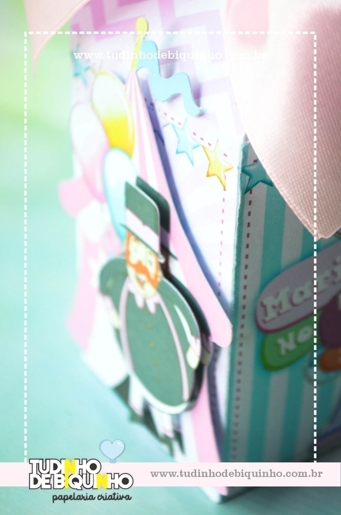 Caixa em papel 240gr, detalhes aplicados e fita de cetim.