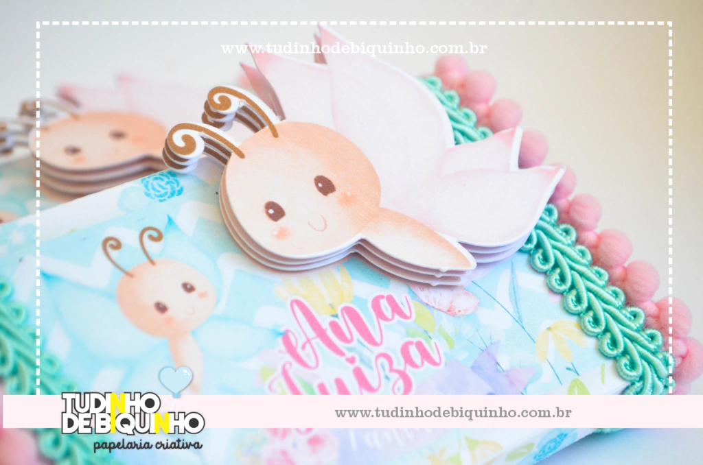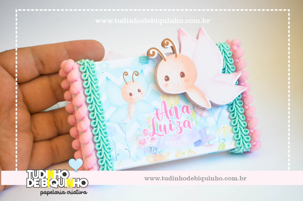 Caixa em papel 240gr com aplique em 3D e aviamentos