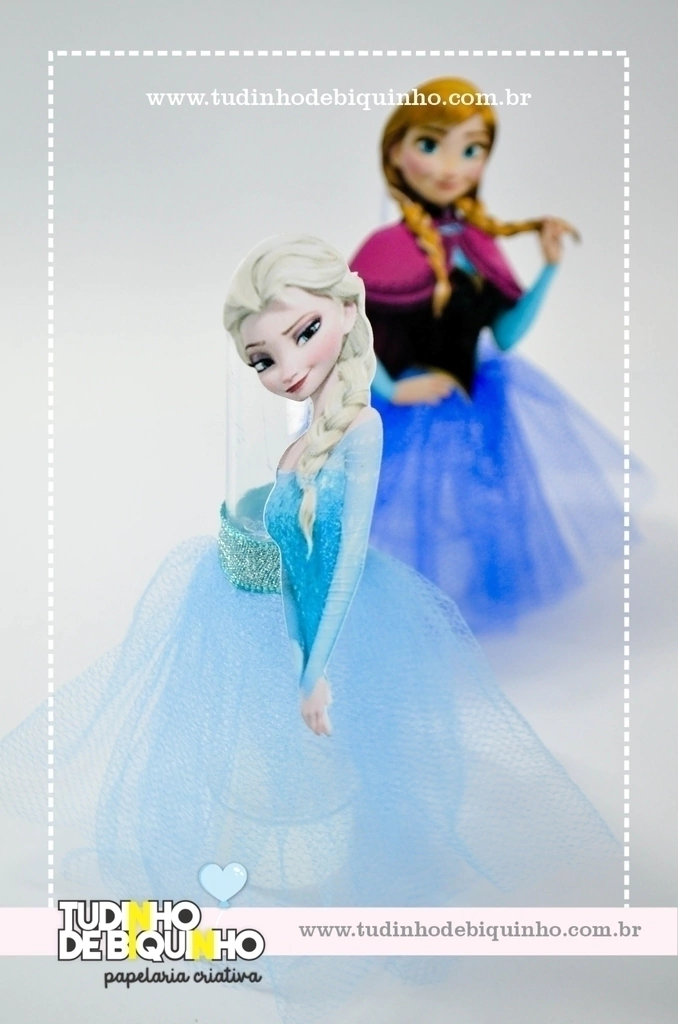 Tubete de 13cm com apliquem em papel 240gr e saia de filó